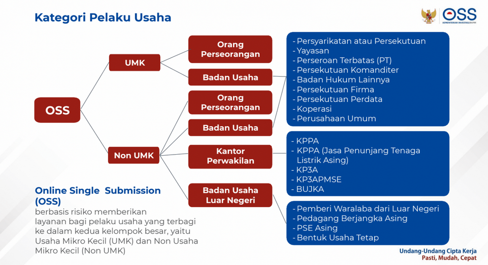 Indonesia telah mengalami reformasi signifikan dalam proses perizinan usaha, terutama pasca Undang-Undang No. 11 Tahun 2020 tentang Cipta Kerja (UU Ciptaker) diresmikan. Tujuan utamanya adalah memangkas rantai birokrasi yang panjang dan waktu yang lama untuk memulai usaha, digantikan dengan sistem yang cepat, terintegrasi, dan berbasis risiko, Pemerintah memperkenalkan Online Single Submission Risk-Based Approach (OSS RBA), sebuah platform daring terpusat yang dikelola oleh Badan Koordinasi Penanaman Modal (BKPM). Sistem ini dirancang untuk memudahkan pelaku usaha, darĂ skala mikro hingga besar, dalam memperoleh legalitas yang diperlukan secara efisien.